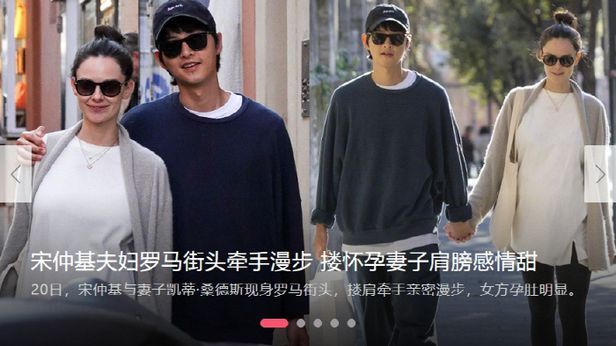 지난 4월 20일 중국의 한 연예매체인 시나연예는 송중기가 아내 케이티와의 로마 공개 데이트를 즐겼다며 여러 장의 사진을 게재했습니다.
