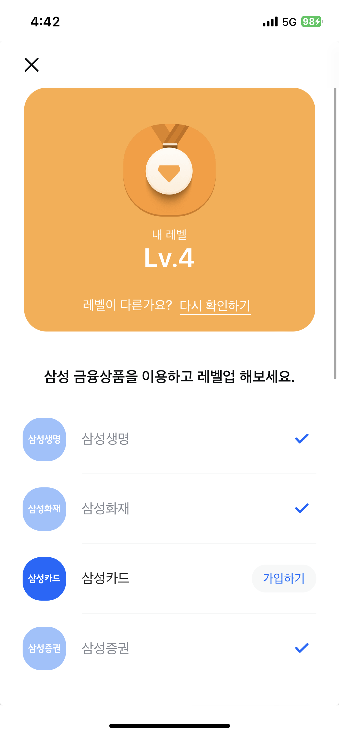 (알라나는 삼성카드를 사용하지 않기 때문에 레벨 4)
