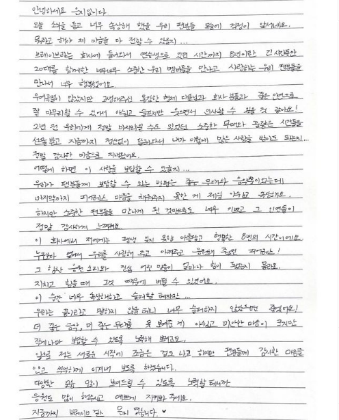 한편 민영은 16일 팬 플랫폼을 통해 소속사와의 전속 계약은 만료가 되지만 브레이브걸스 멤버들 4명은 언제든지 함께할 의사가 있다고 밝혔다고 하네요.