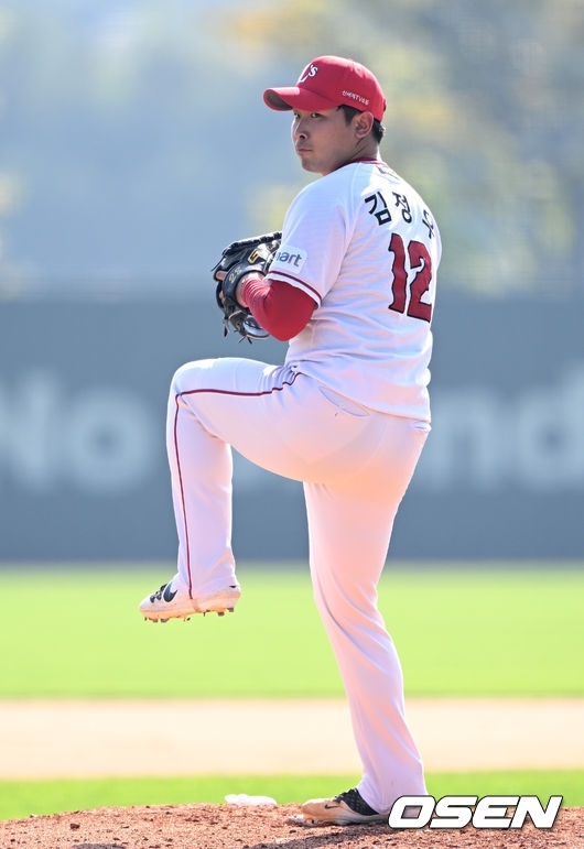 김정우선수는 동산중학교-동산고등학교를 졸업한 후 2018년 신인드래프트 1차 지명으로 SK 와이번스로 입단했습니다. 신장 183cm-체중 87kg의 탄탄한 신체조건을 가지고 있으며 슬라이더와 직구, 체인지업, 커브를 두루 구사하는 걸로 알려졌습니다.