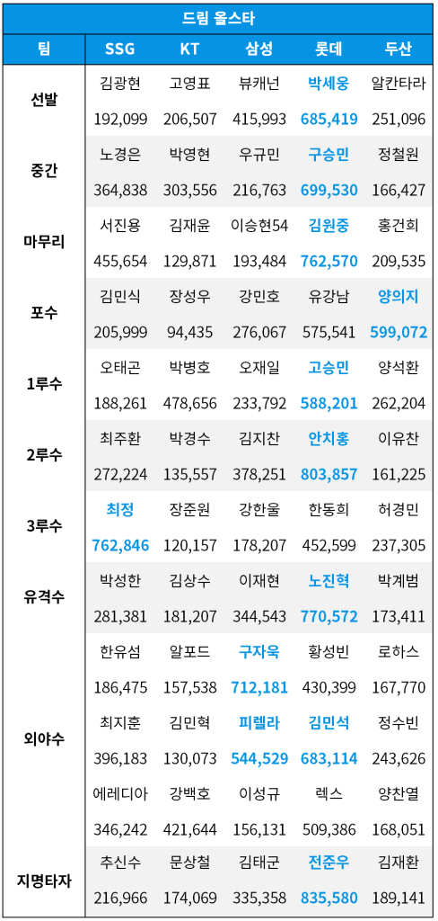 2023 신한은행 SOL KBO 올스타 '베스트 12'팬 투표 2차 중간집계 결과 발표