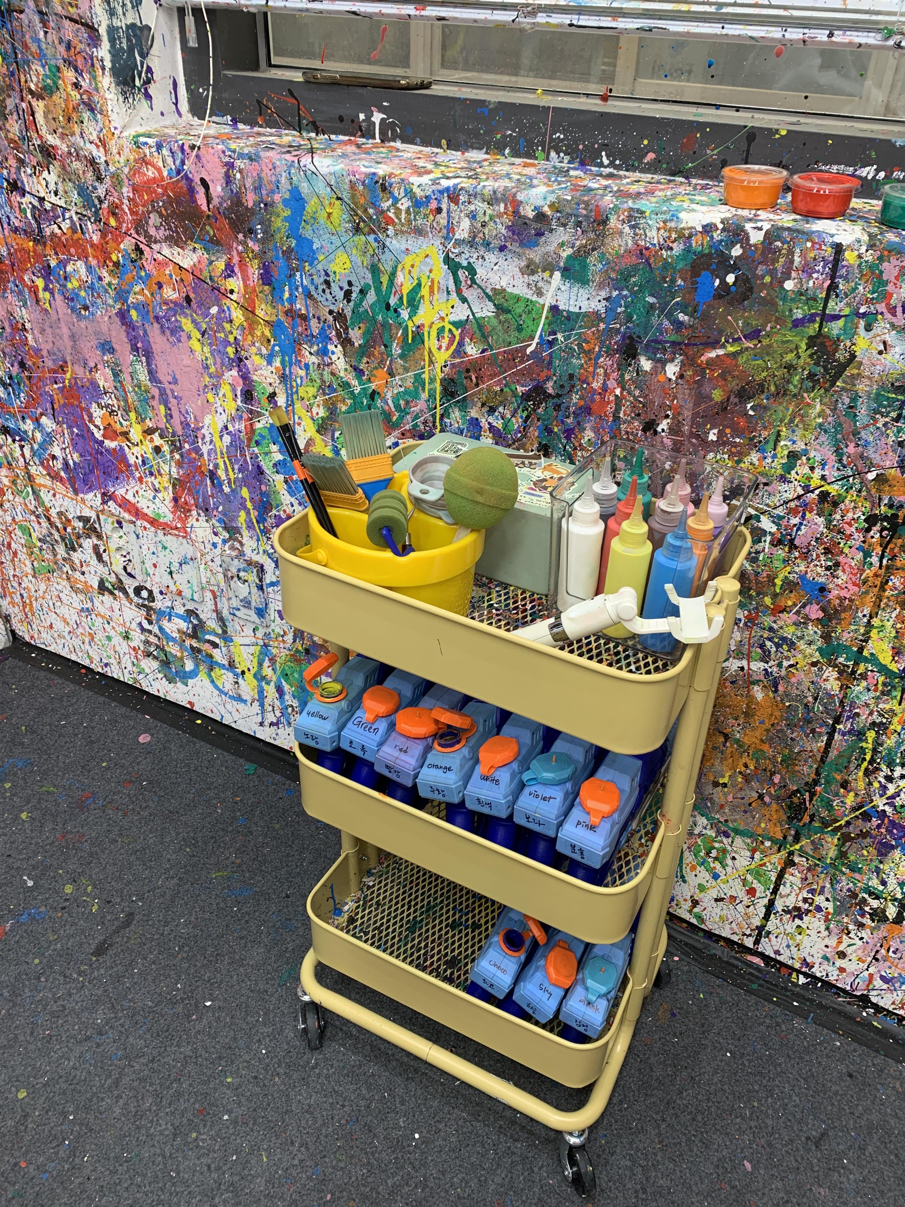 1인 4개씩 고른 물감들을 한쪽에 나열해 놓고