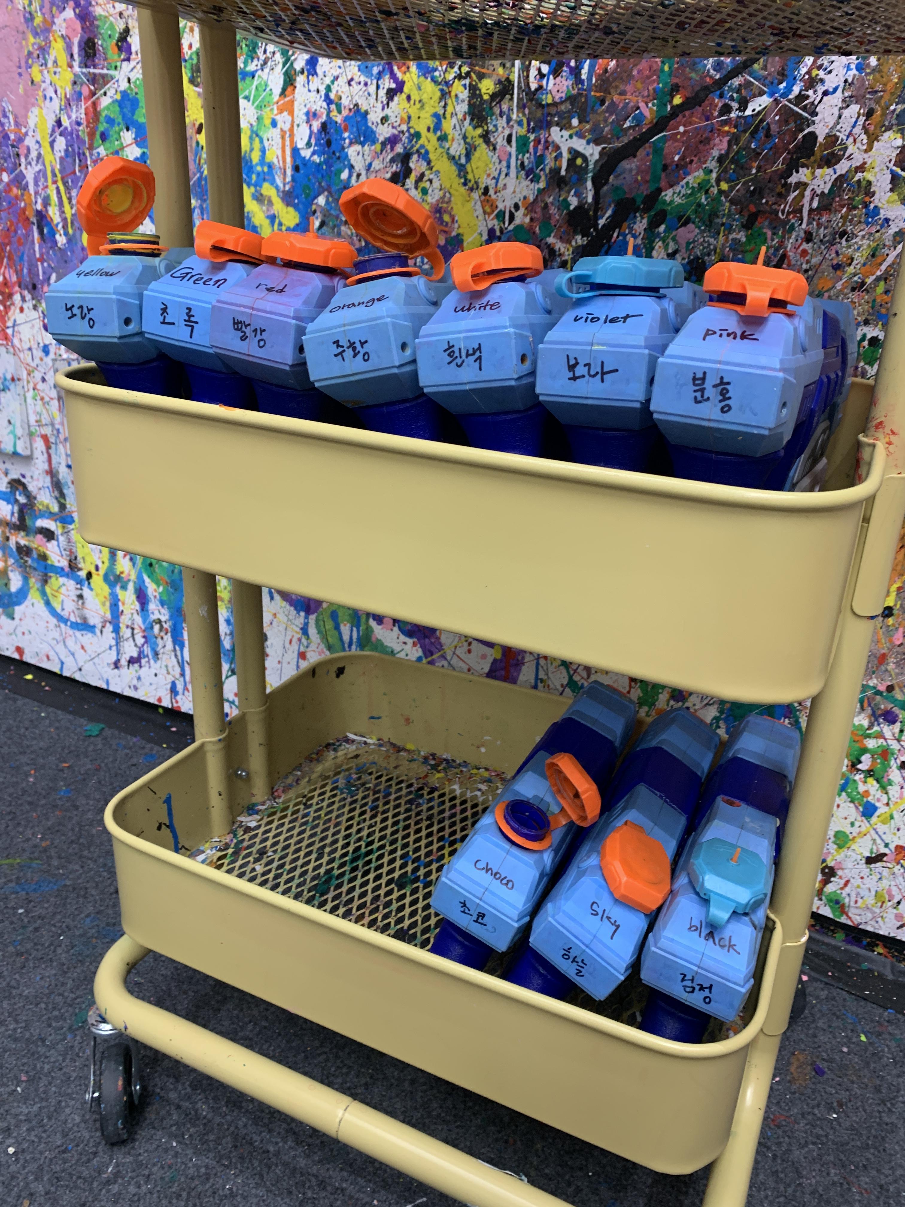 모든 페인팅이 끝나고 나오기 전에 옷, 신발 커버 그리고 물감까지 다 버리고 고글은 반납하면 끝!