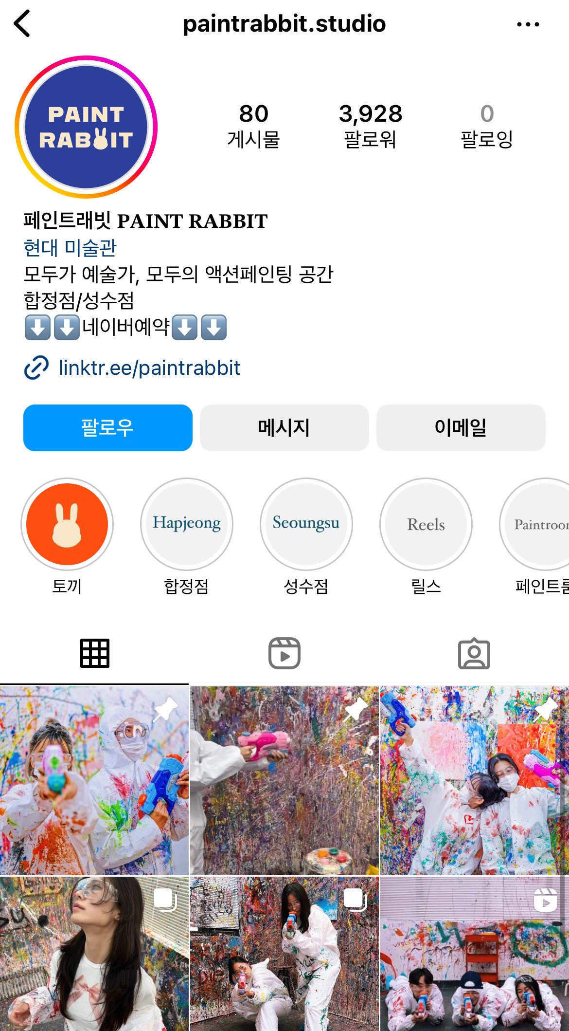 어느날 인스타 알고리즘에 걸려 발견하게 된 #페인트레빗 심지어 위치도 집이랑 가깝고 난생 처음 보는 놀거리라 호다닥 예약하고 다녀왔습니다.