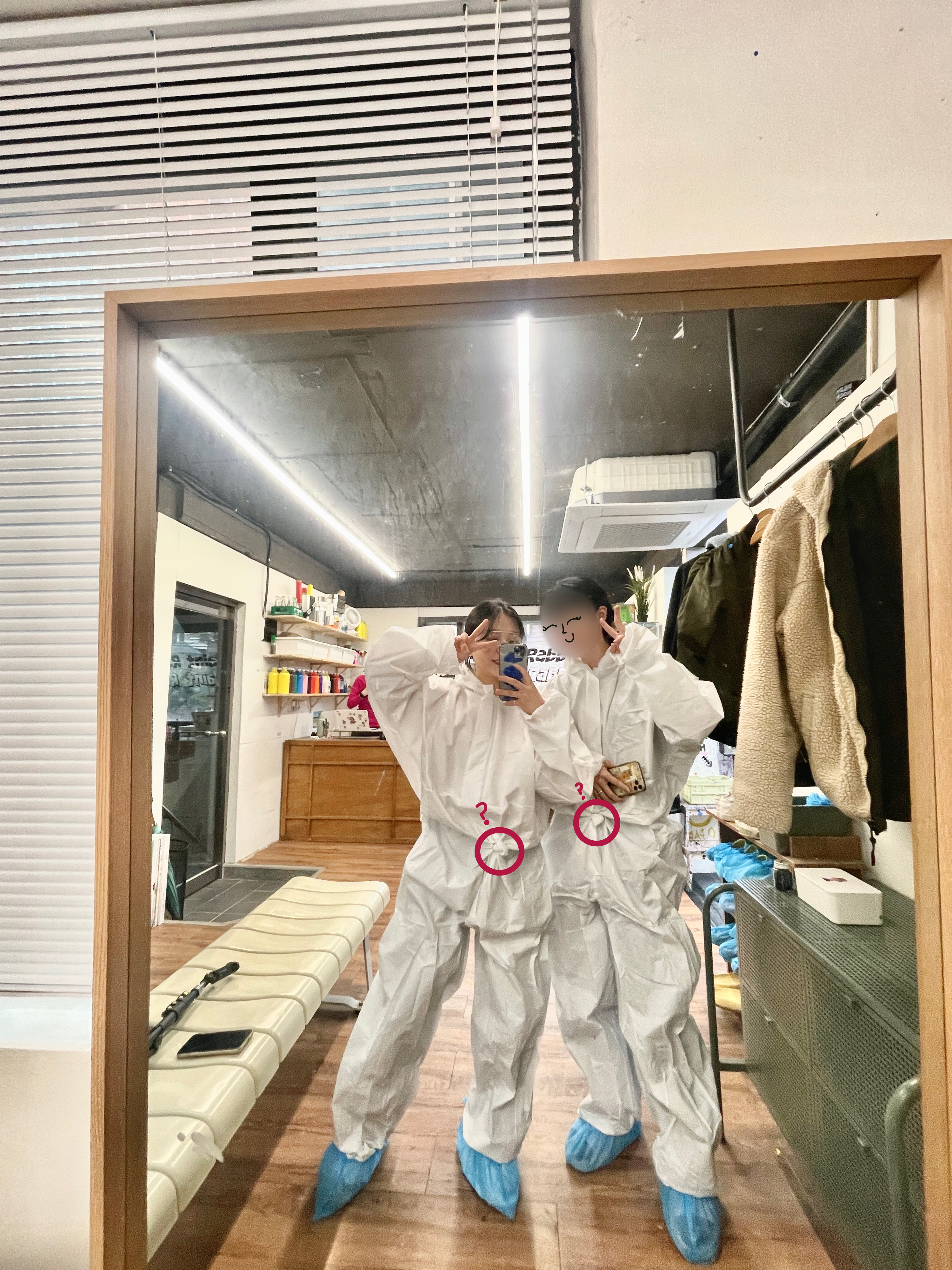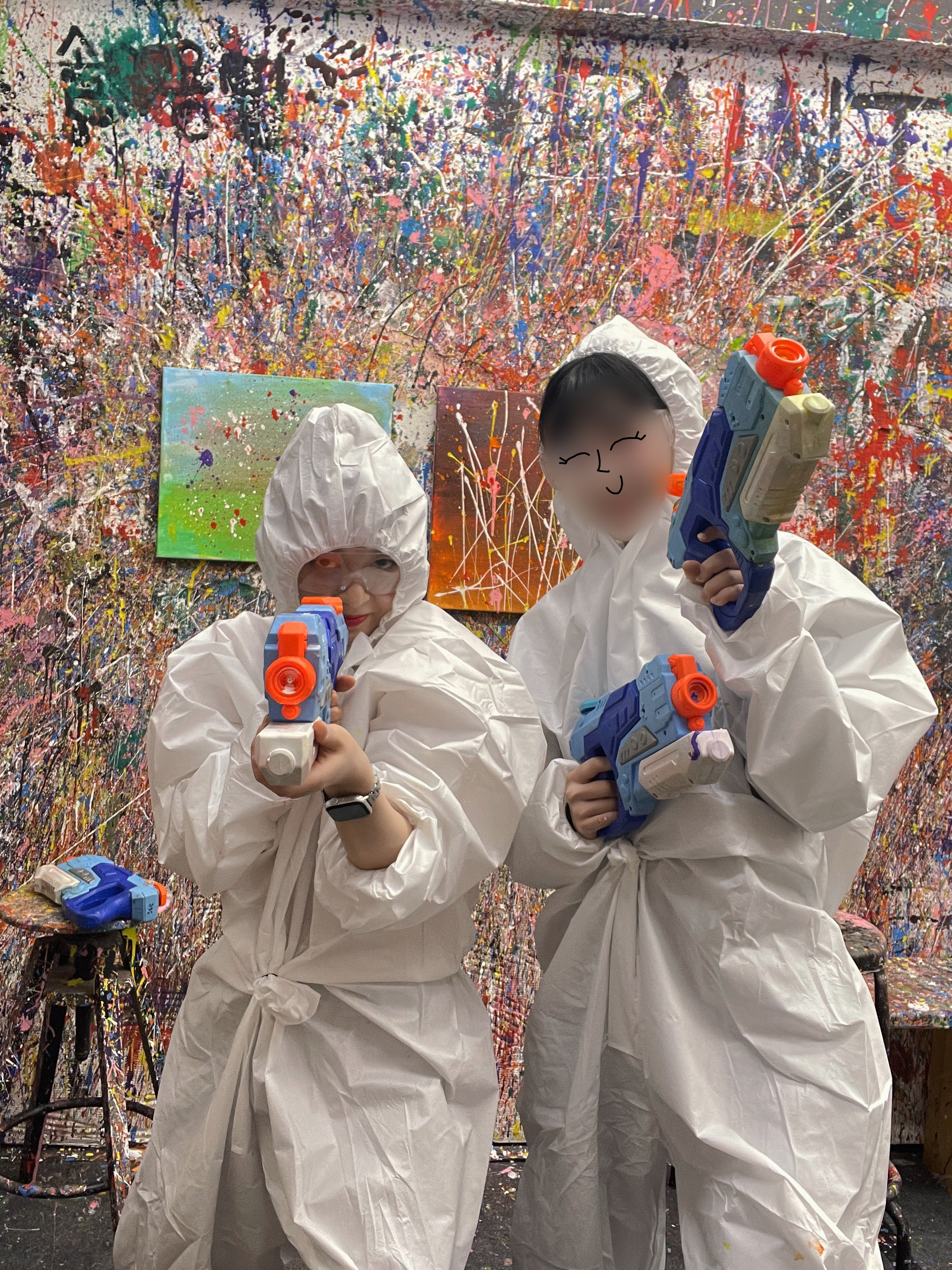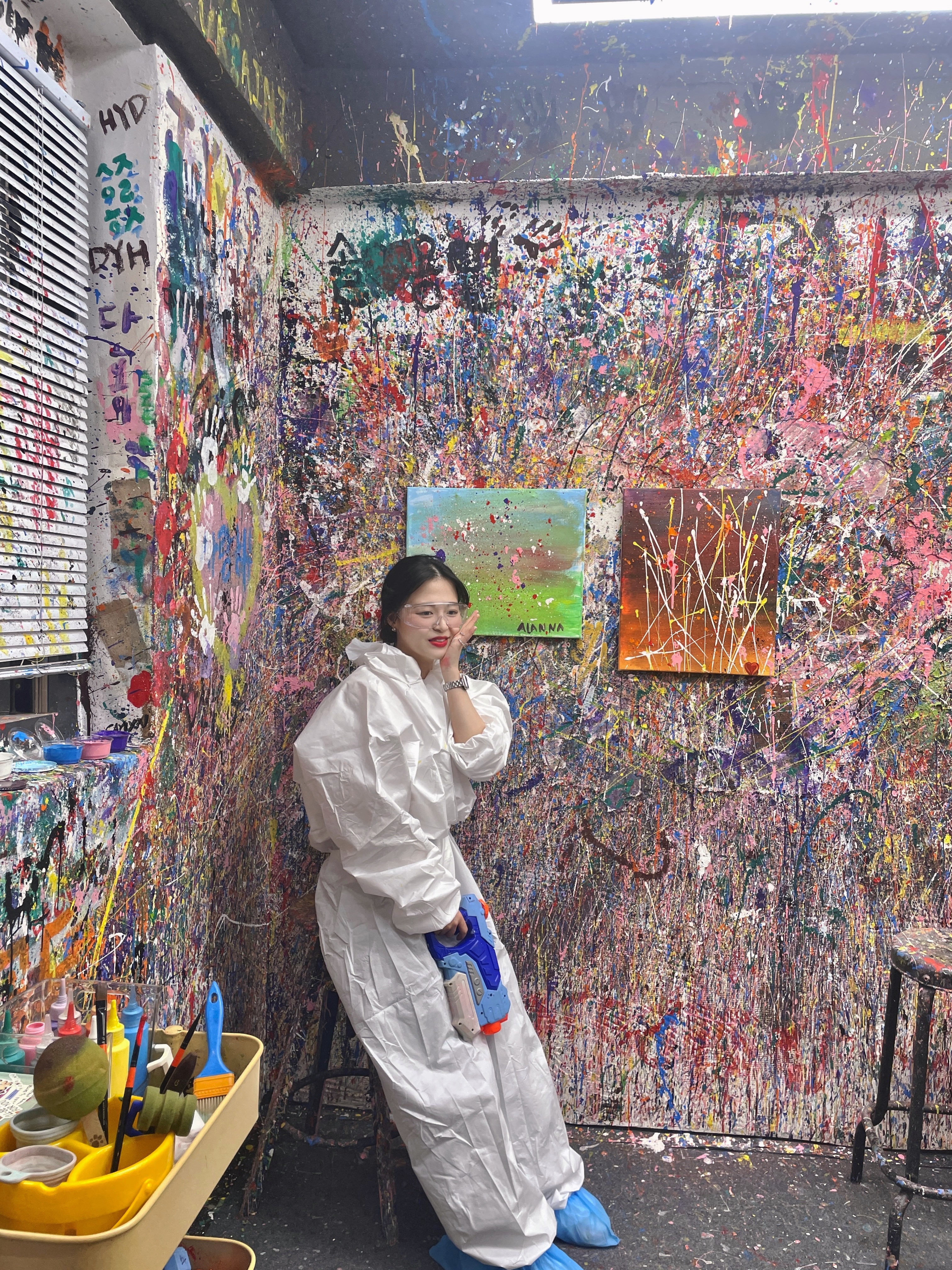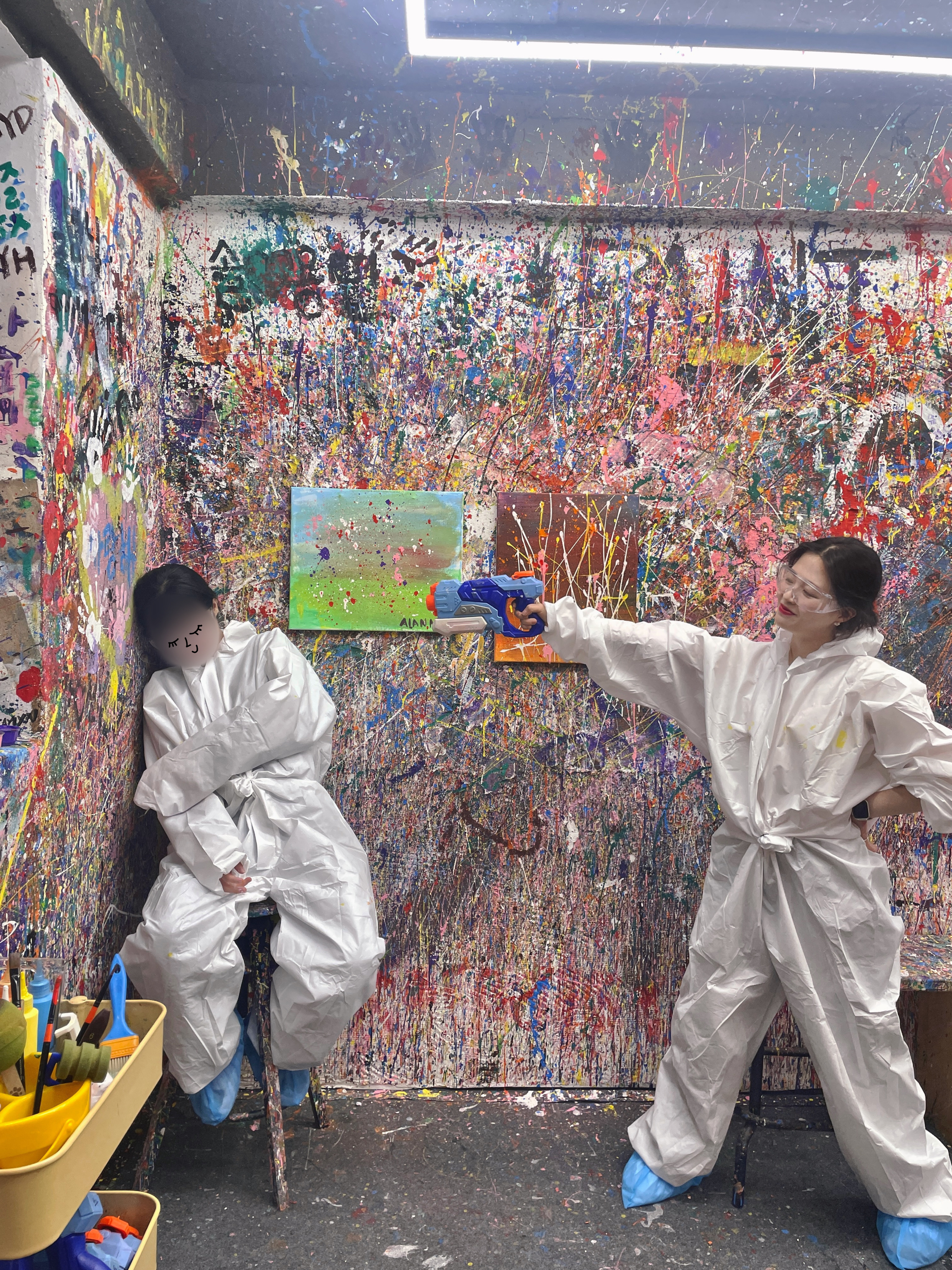 모든 페인팅이 끝나고 나오기 전에 옷, 신발 커버 그리고 물감까지 다 버리고 고글은 반납하면 끝!