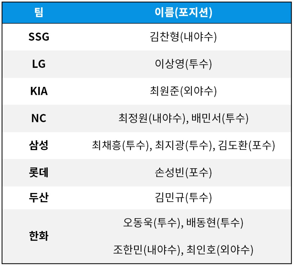 이밖에 롯데의 포수 손성빈선수와 장타력을 갖춘 한환의 외야수 최인호선수도 즉시 전력감으로 꼽힙니다.