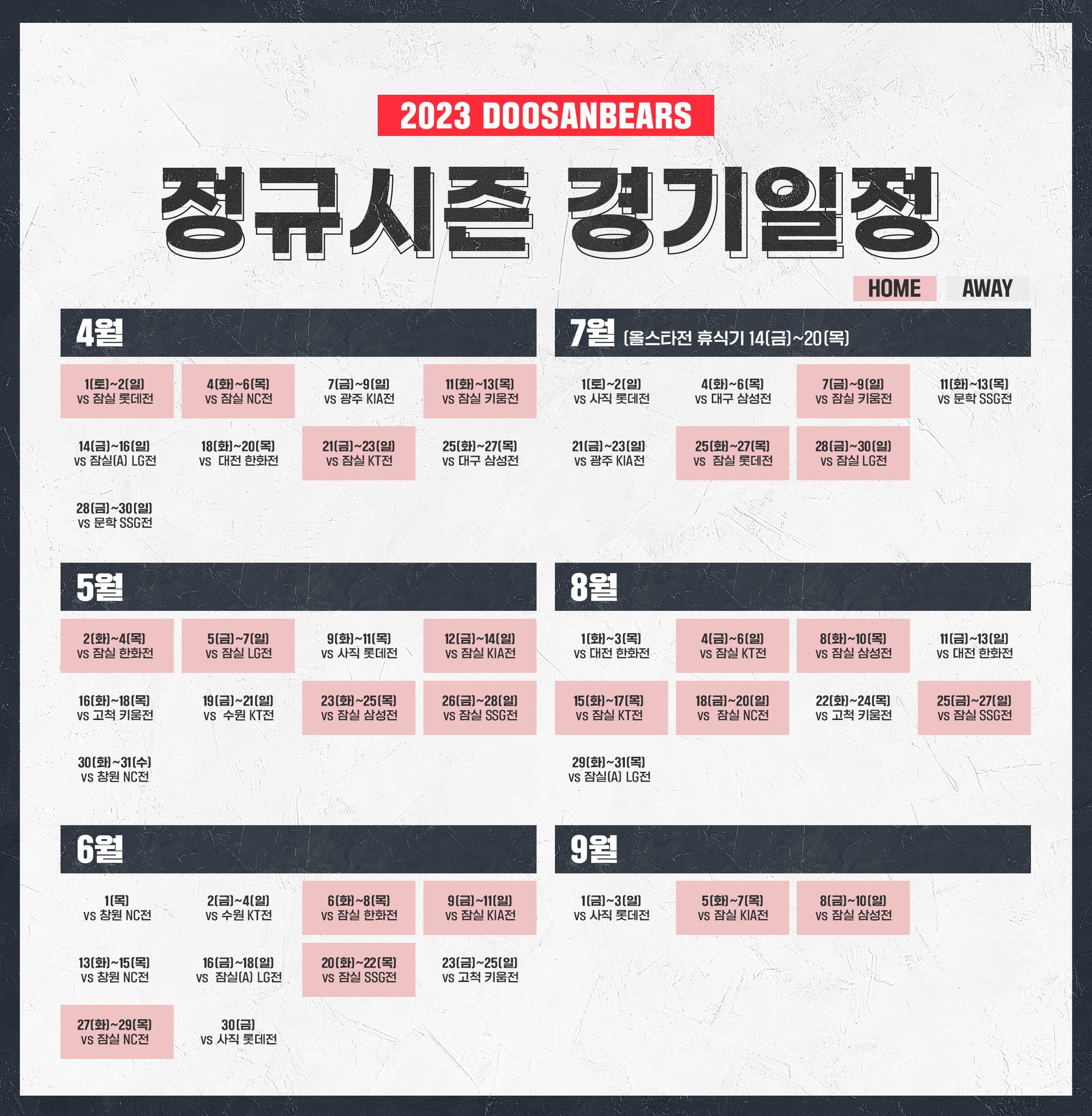 따라서 두산베어스는 롯데자이언츠와 잠실경기장에서 개막전을 치르며 2023 프로야구 정규시즌의 시작을 알리게 됩니다.