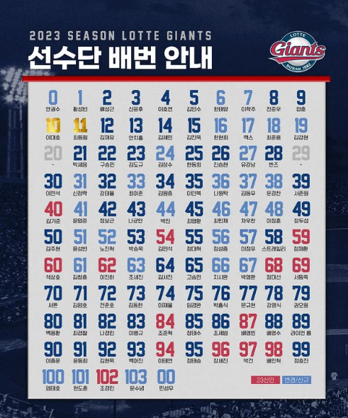 롯데 자이언츠 2023 선수단 배번