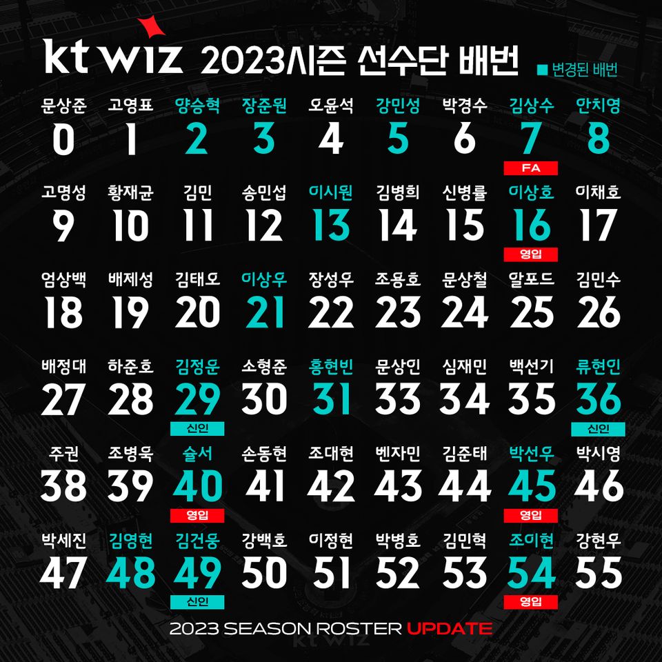kt 위즈 2023 선수단 배번