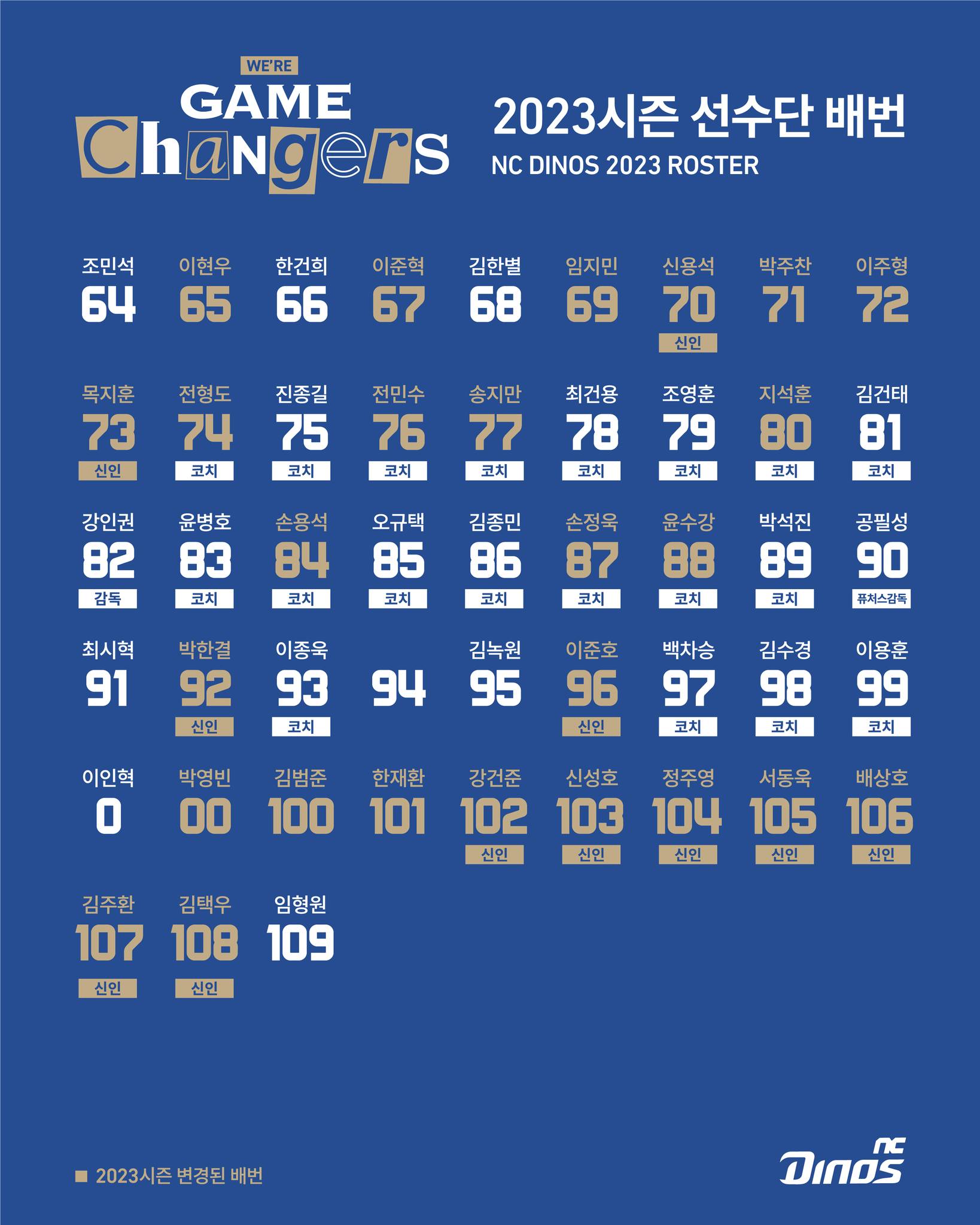 2023 시즌 NC다이노스 선수단 배번