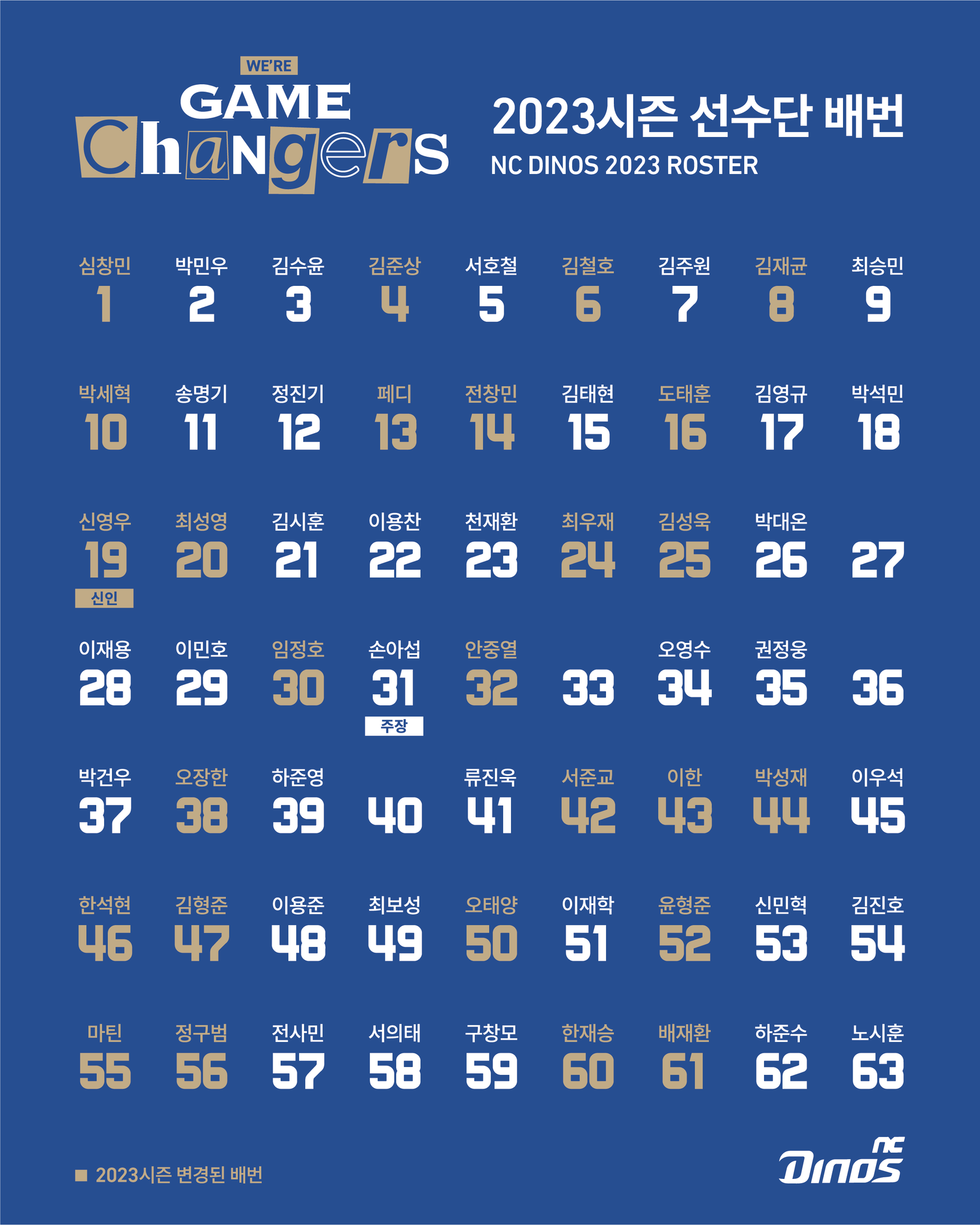 2023 시즌 NC다이노스 선수단 배번