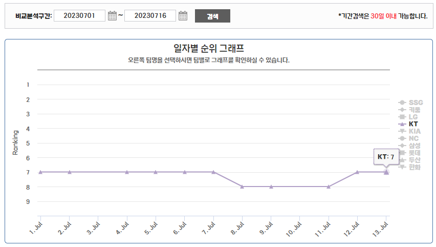 오늘은 2023 KBO 10개 구단 6월 및 7월 순위 변동 비교를 해볼까 합니다.