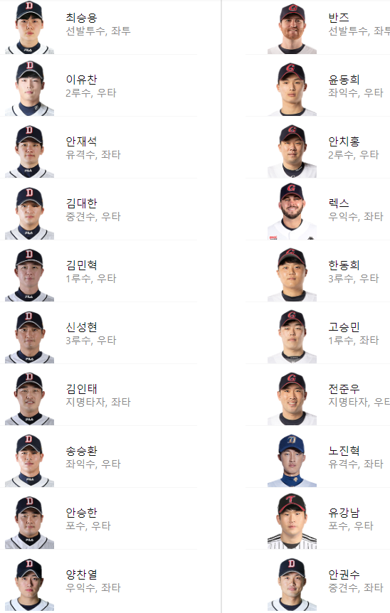 두산베어스는 최승용 선수가 마운드에서 내려간 후 박정수-김호준-김강률-이병헌-홍건휘가 차례로 마운드를 지키며 박정수 선수를 제외 한 나머지 선수들은 무실점 피칭을 보여줬습니다.