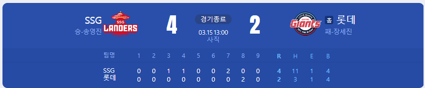 SSG랜더스가 롯데자이언츠를 상대로 4 대 2 승리를 가져갑니다.