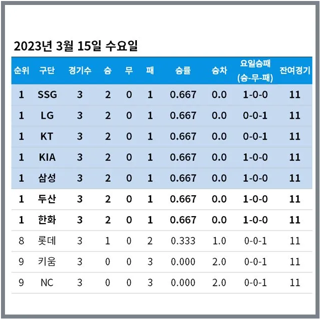 오늘은 230315 KBO 시범 경기 리뷰를 하면서 순위까지 알아볼게요!