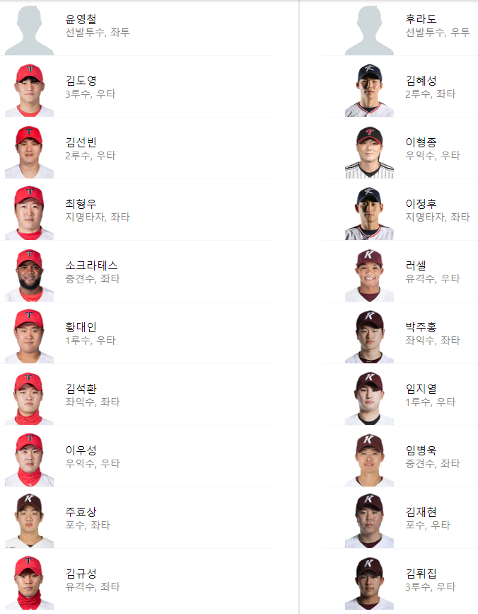 오늘 기아의 선발 투수는 신인 윤영철선수, 키움의 선발 투수는 작년에 뛰었던 애플러 선수를 대신해 새로 영입한 후라도 선수였습니다.