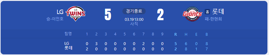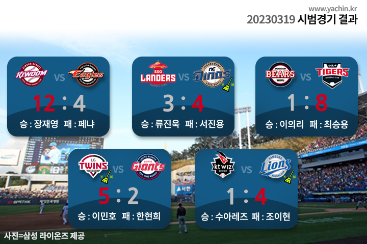 | 230320 월요일 KBO 시범경기 리뷰 및 순위 (0) | 2023.03.20 |