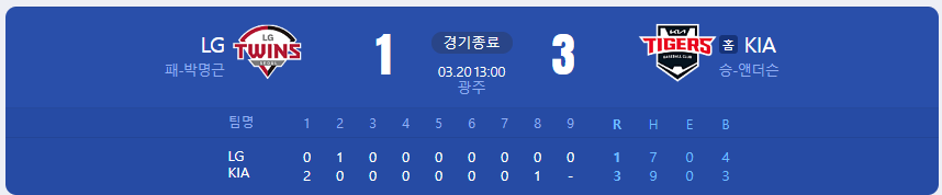 기아 타이거즈가 LG 트윈스를 상대로 3 대 1 승리를 가져갑니다.