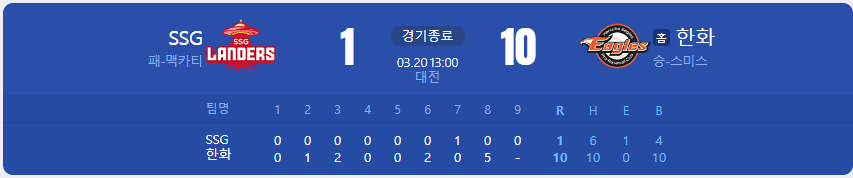 한화이글스가 SSG를 상대로 10 대 1 대승리를 거둡니다.