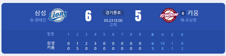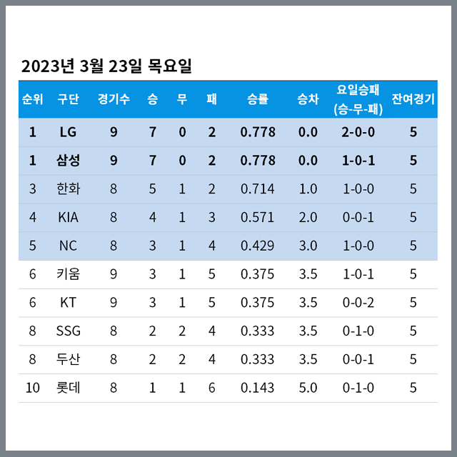 230323 목요일 KBO 시범경기 리뷰 및 순위