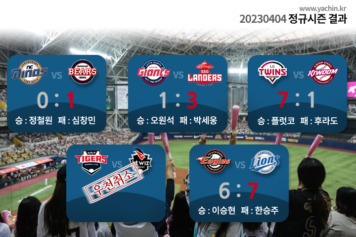 230404 화요일 KBO 정규시즌 리뷰 및 순위 확인