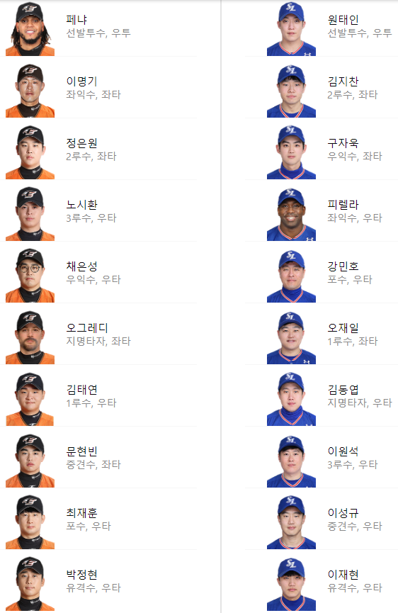선발 라인업: