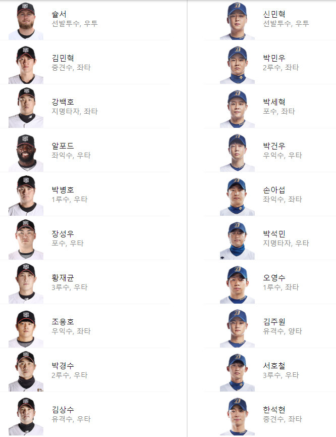 선발라인업: