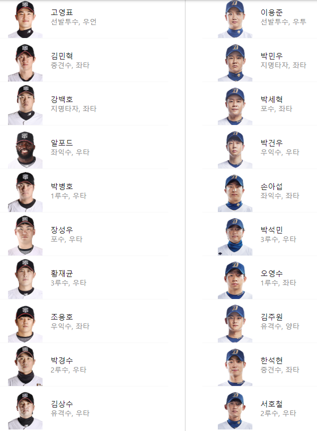 반면 삼성의 선발 투수로 등판한 백정현선수는 5이닝동안 4개의 피안타 4개의 사사구 1실점 무난한 투구를 보여줬지만, 타선의 도움을 받지 못한채 패전투수가 되었습니다.