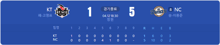 6회부터는 NC는 김진호투수-류진욱투수-임정호투수-김영규투수로 이어지는 강력한 불팬진을 앞세워 KT의 타선을 꽁꽁 묶어 추격을 허용하지 않았습니다.