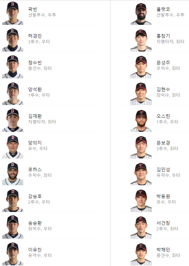 플럿코선수와 대결을 펼친 두산의 곽빈선수는 7과 1/3 동안 6개의 피안타 2개의 볼넷 3 실점으로 호투했지만 야수진의 도움을 받지 못한 채 패전의 쓴맛을 맛봐야 했습니다.