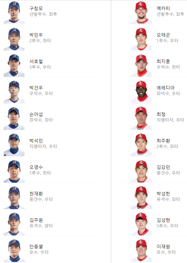 1회 말 한화는 오그레디선수의 2타점 적시 2루타로 기선 제압을 하며 선취득점했으나 1회말 강백호선수에게 솔로포를 허용했습니다.