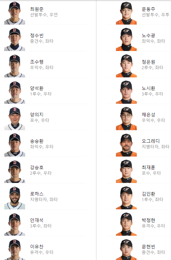 두산 베어스 vs 한화이글스