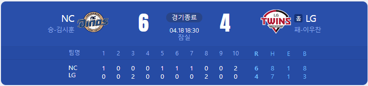 NC 다이노스 vs LG 트윈스