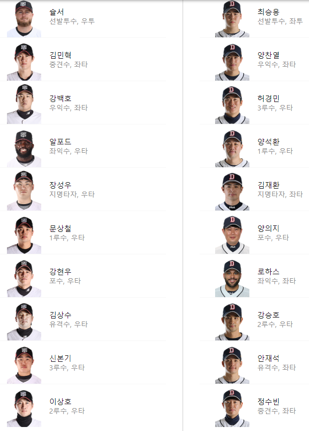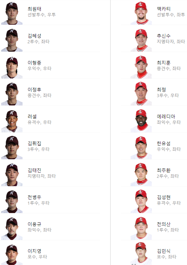 선발 라인업: