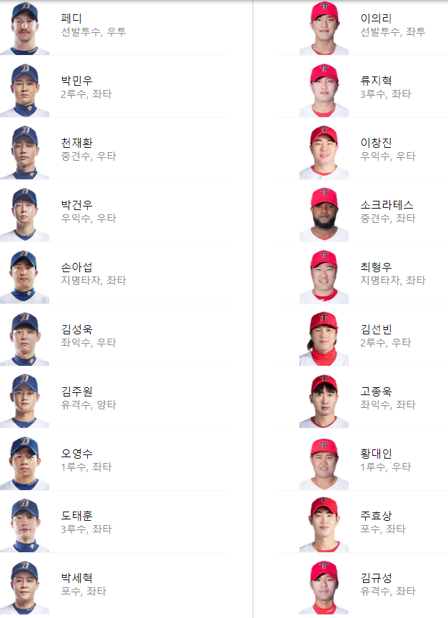 선발 라인업:
