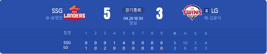 SSG 랜더스가 LG 트윈스를 상대로 5 대 3 승리를 가져갑니다.