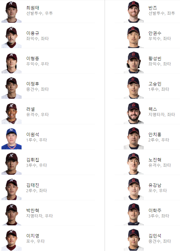 선발 라인업: