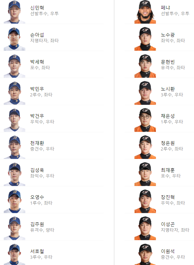 선발 라인업: