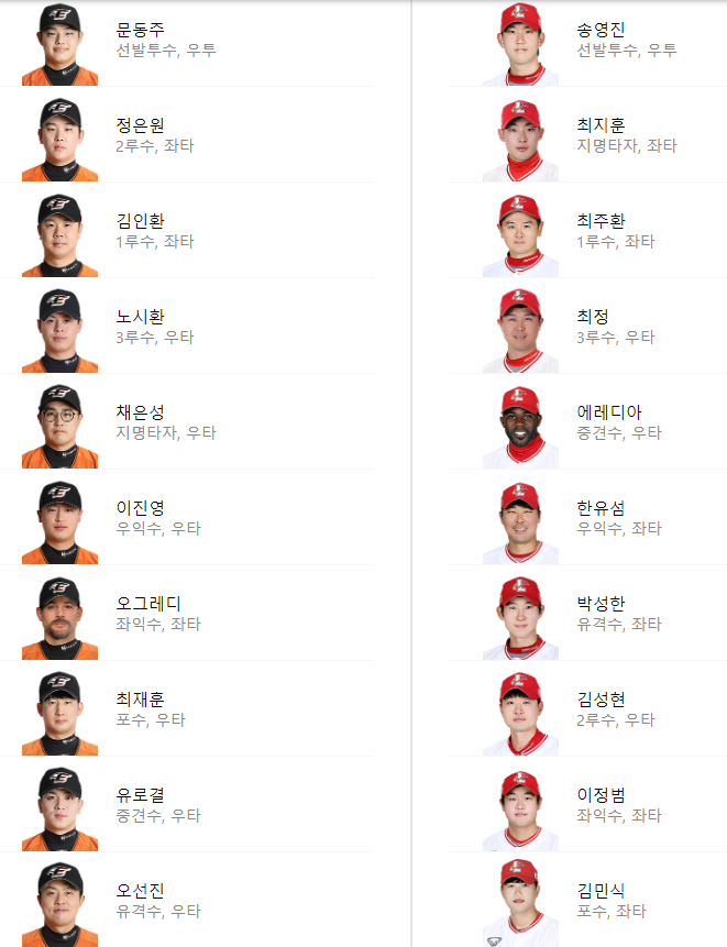 이어 이정범선수의 볼넷으로 또 한 번의 만루를 얻은 SSG는 김민식선수의 내야안타로 역전에 성공했습니다. 이후 최지훈선수의 2타 적 적시 2루타로 SSG는 문동주 선수를 강판시켰습니다.
