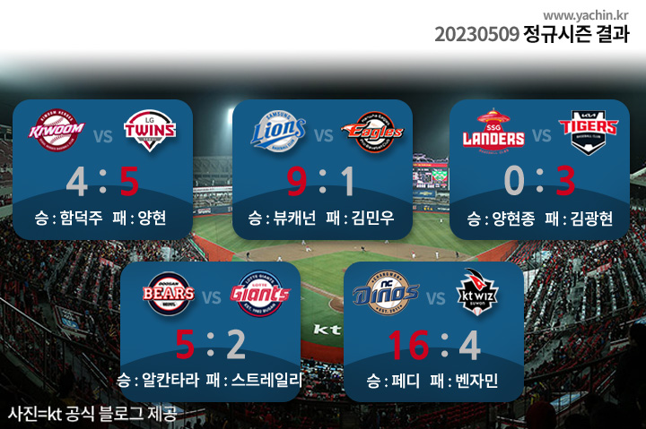 | 230510 수요일 KBO 정규시즌 리뷰 및 순위 확인 (0) | 2023.05.11 |