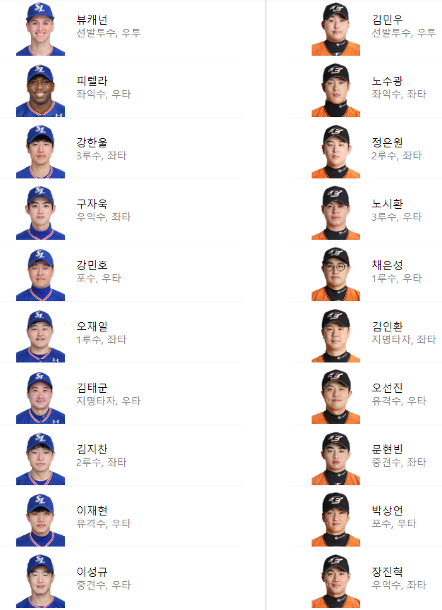 최형우선수의 볼넷을 시작으로 투아웃에 변우혁선수의 투런포가 터지며 2 대 0으로 앞서 나갔고 5회 말에는 류지혁선수의 적시타가 터지며 격차를 더 벌리며 승리를 기록했습니다.