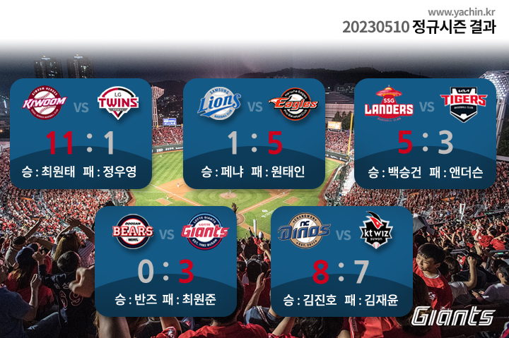 230510 수요일 KBO 정규시즌 리뷰 및 순위 확인