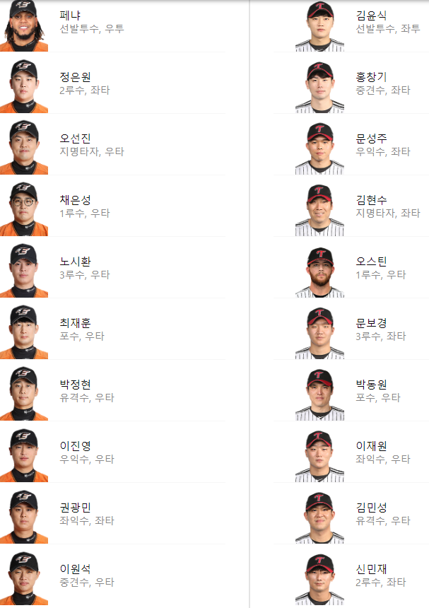 선발 라인업: