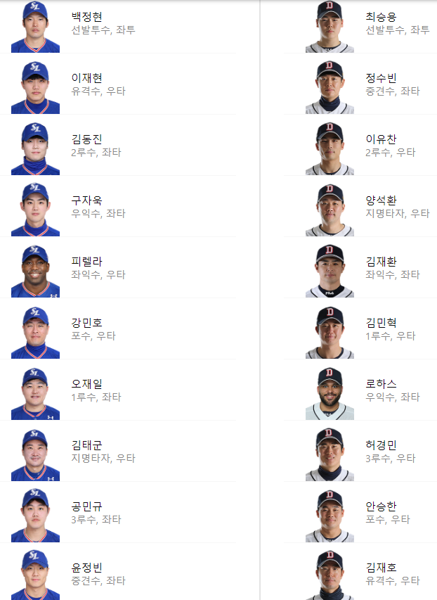 2회 초 강민호선수의 안타를 시작으로 오재일선수의 안타-김태군선수의 병살타때 3루 주자 강민호선수가 홈을 밟으며 1 대 0의 리드를 가져갔습니다.