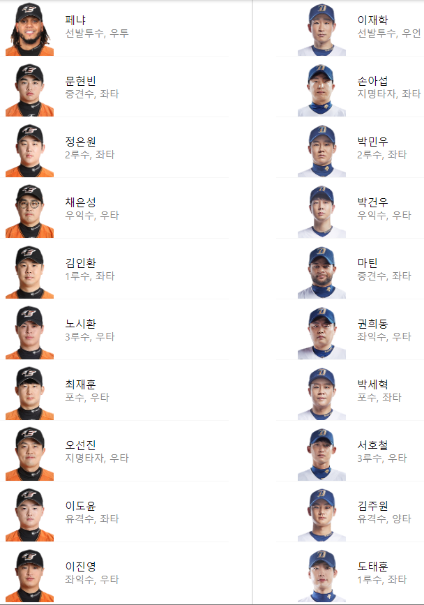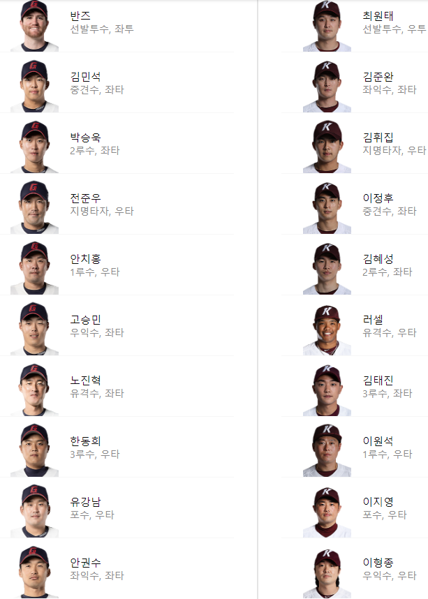 선발 라인업: