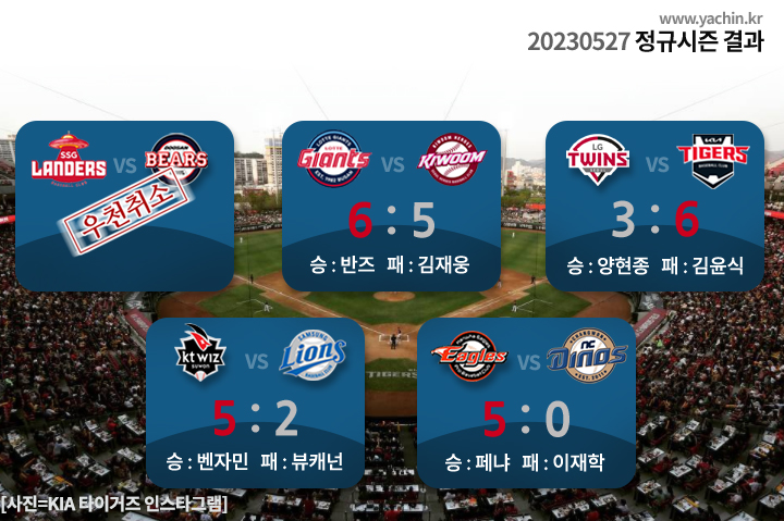 2023년 5월 27일 토요일 정규시즌 순위