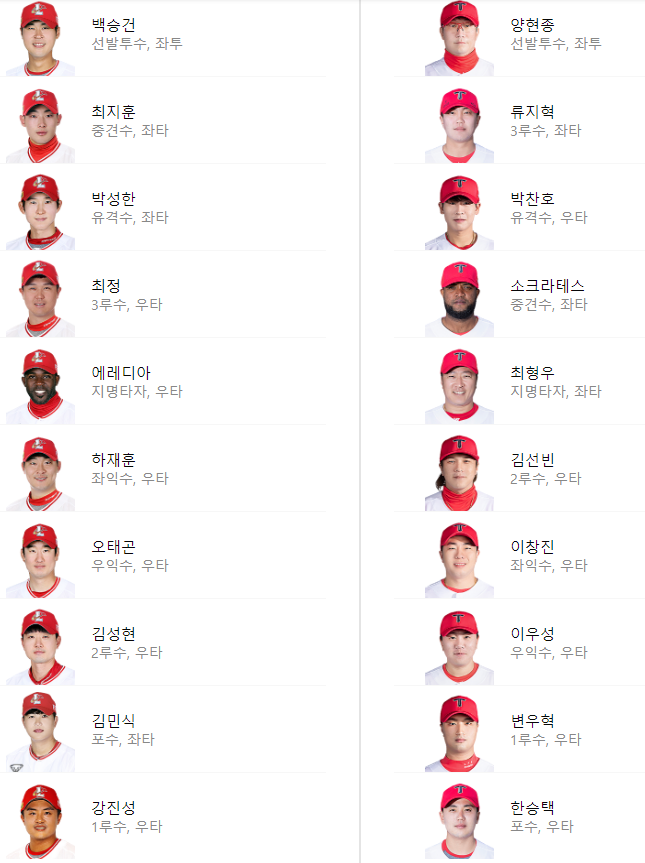 선발 라인업:
