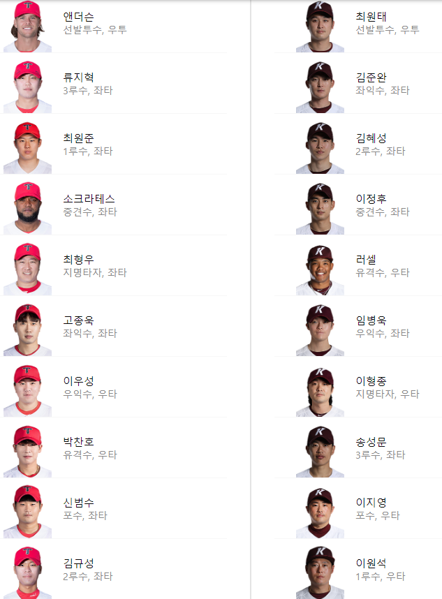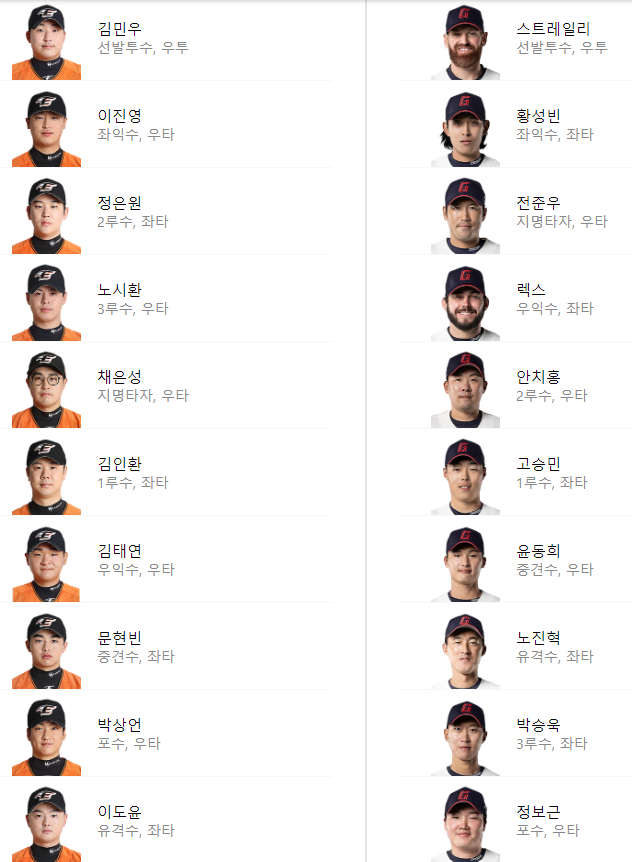 선발 라인업: