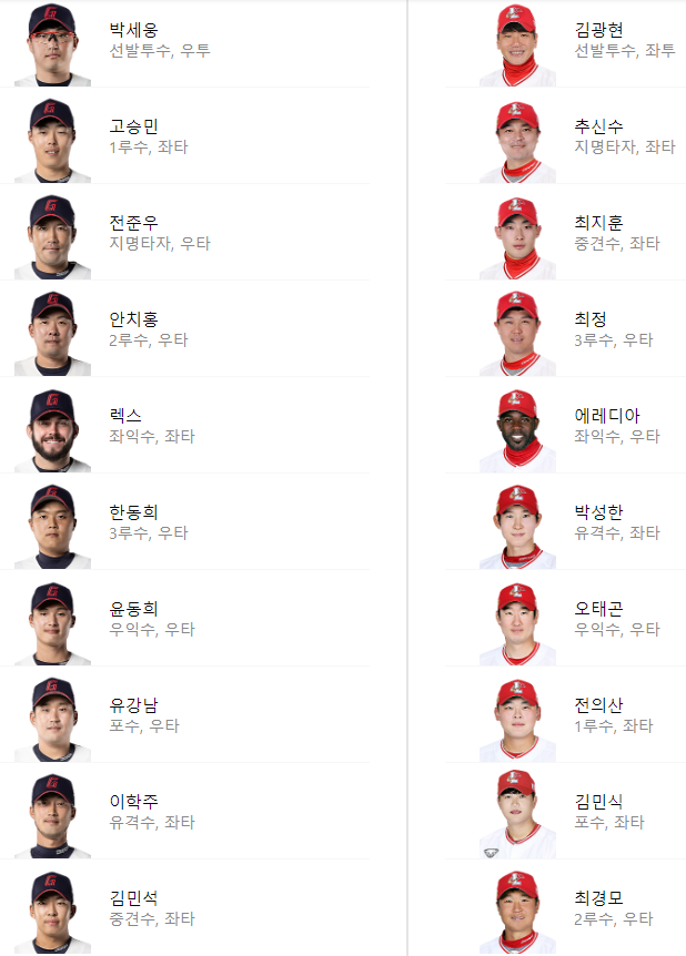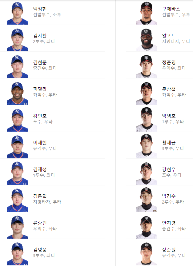 선발 라인업: