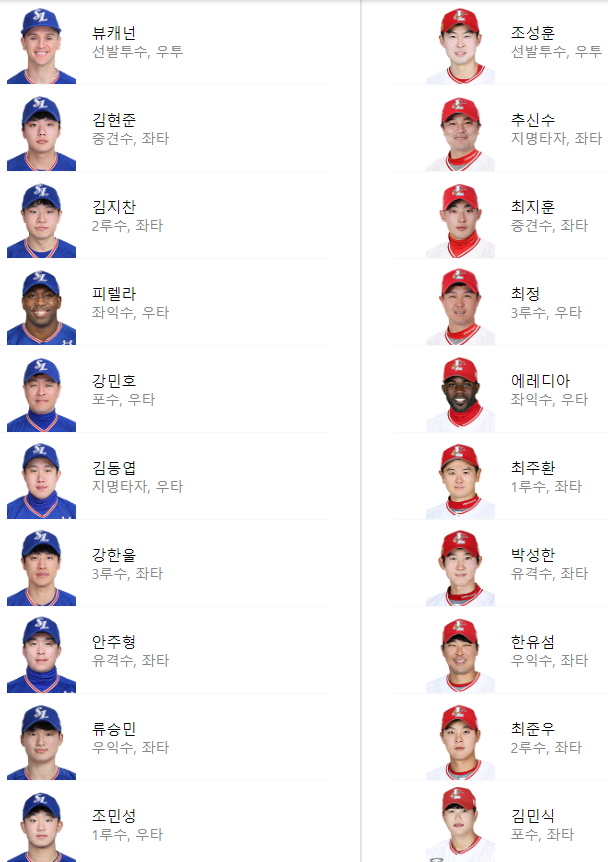 선발 라인업: